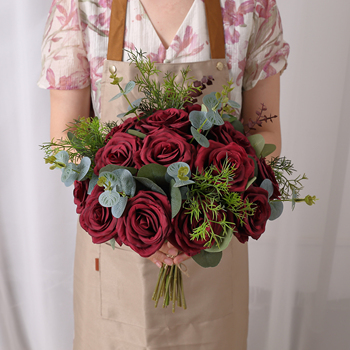 Bouquet de mariée rose artificielle bordeaux Bouquet rouge vin avec eucalyptus pour Bouquet de fleurs de mariage bohème rustique Faux fleur rose