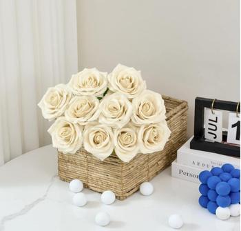बेज गुलाब कृत्रिम फूल अच्छे और टिकाऊ दिखते हैं, जो इनडोर घरेलू सजावट और शादी के केंद्र के लिए उपयुक्त हैं।