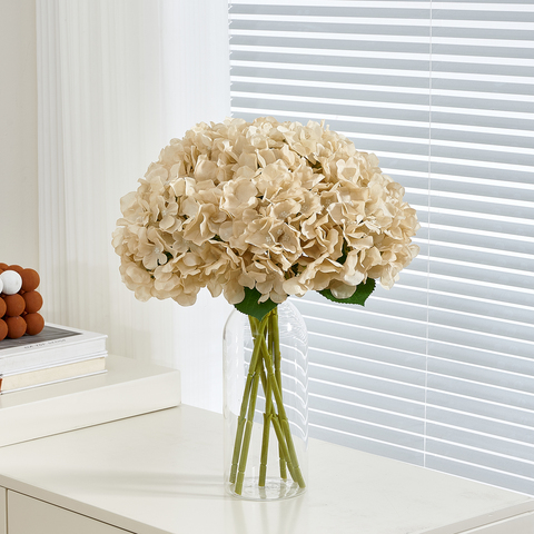 人工シルクアジサイベージュの花2枚の葉でリアルタッチ屋外ウェディングオフィスホームパーティーリビングルームテーブルの装飾